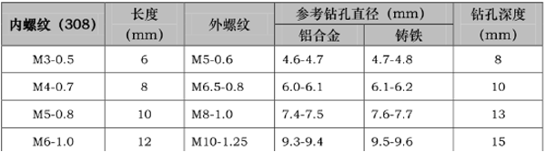 3、自攻螺套常用型號(hào)