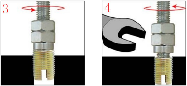 當(dāng)安裝數(shù)量較少時(shí),可以采取簡(jiǎn)易安裝的方法,即采取對(duì)應(yīng)規(guī)格螺栓加螺母的方法,將自攻螺套固定在對(duì)應(yīng)型號(hào)的螺栓上,用同型號(hào)的螺母固定,使三者成為一個(gè)整體,再用扳手把自攻螺套擰入底孔,最后把螺栓退出來即可,具體操作見下圖。